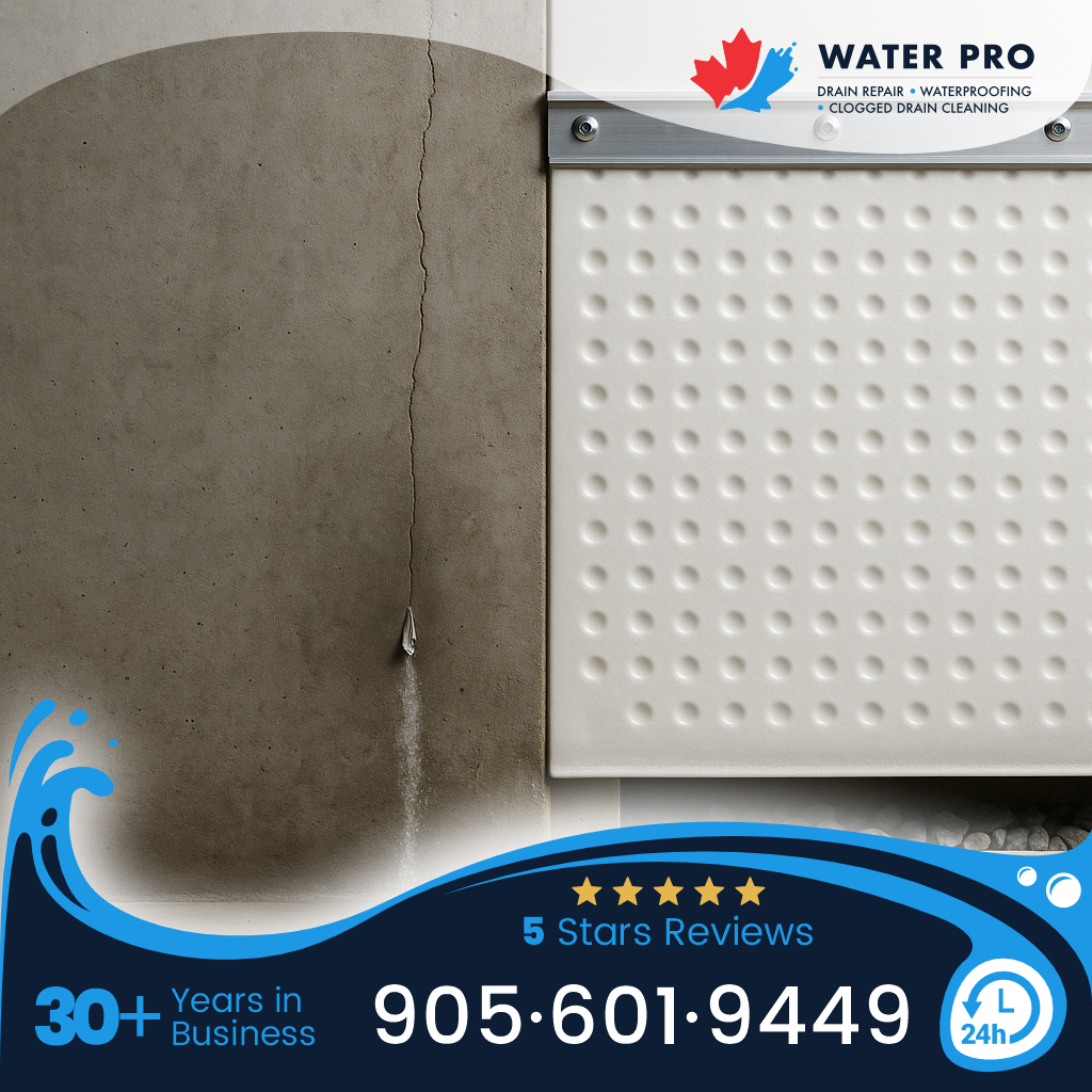 Water Pro Master Corp delivers wet basement repair and basement waterproofing tailored to our local climate and soil. We handle exterior and interior waterproofing, foundation crack injection, French drain/weeping tile work, drain repair and drain cleaning, sump pumps with battery backup, backwater valves, and grading and gutter improvements. These proven fixes help keep your basement dry and healthy, protect the structure, lower insurance risk, and support property value.