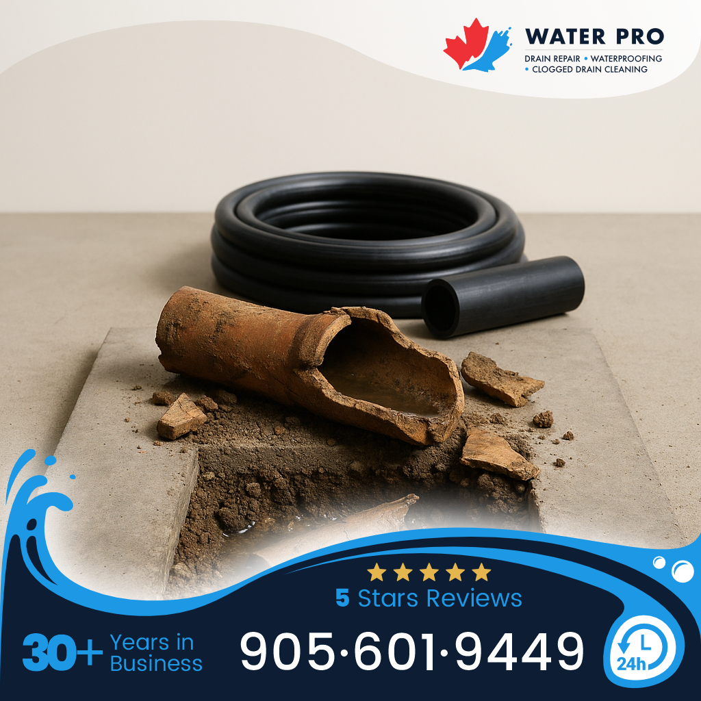 Before any work, we review grading, foundation details, and plumbing so the plan fits your home and local code. If you’d like an on‑site review or a free estimate, please contact us or call (905) 601-9449. For more on related services, see our drain repair & services page.
